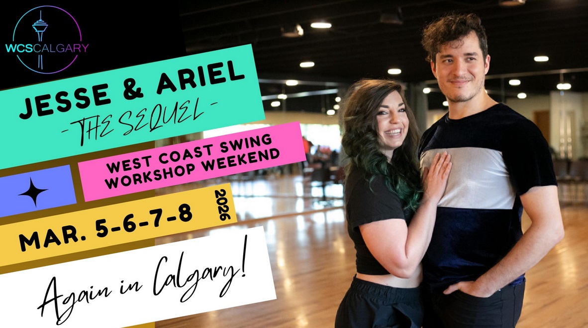 Champion dancers from Kansas City, JESSE LOPEZ & ARIEL PECK, return to Calgary on March 5–6–7–8, bringing their love and mastery of West Coast Swing back to our floor.